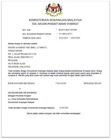 With extensive experience in corporate governance, regulatory compliance, ISO/OHS management systems, and workforce leadership, he has successfully led large teams, driven productivity improvements, and implemented sustainable business strategies. He currently serves as the Managing Director of MSOSH Academy Sdn. Bhd., where he oversees business growth, stakeholder engagement, and strategic direction while actively contributing to the advancement of occupational safety and health professionalism in Malaysia.