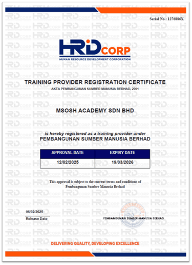 Established in 2018, MSOSH Academy is a wholly-owned company of Malaysian Society for Occupational Safety and Health (MSOSH).